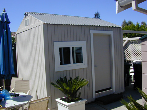 This is my "DarkSights Observatory" which was completed in July 2005. It was built using plans provided by SkyShed, and then modified a bit by me. My location is clearly not a perfect place for visual astronomy or astrophotography, but since I wanted to have a permanent place to set-up my equipment it had to do.