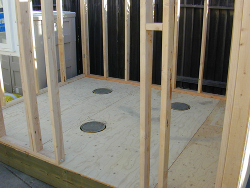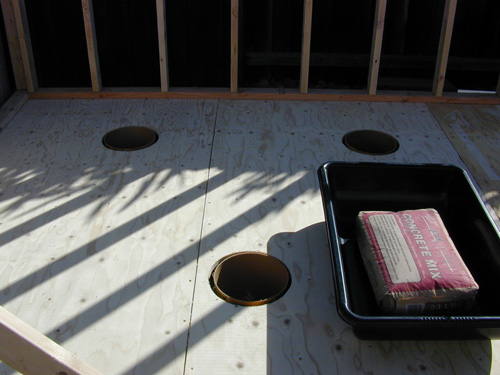 Floor Joists are build and ready for sub-flooring . (June 15, 2005) Sub-floor is down and forms in place for Pier supports