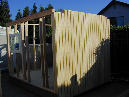 Window installed and first wall panels in place View looking to the South of section of paneling installed