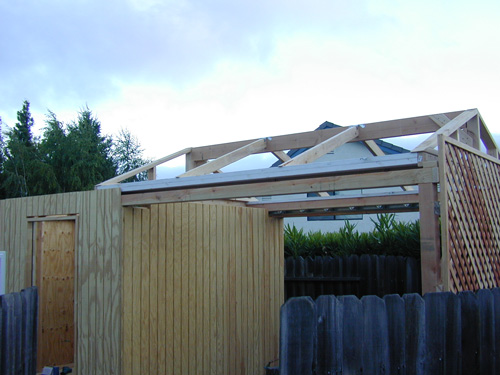 Roll-off roof support structure attached Roof Rollers and Track installed